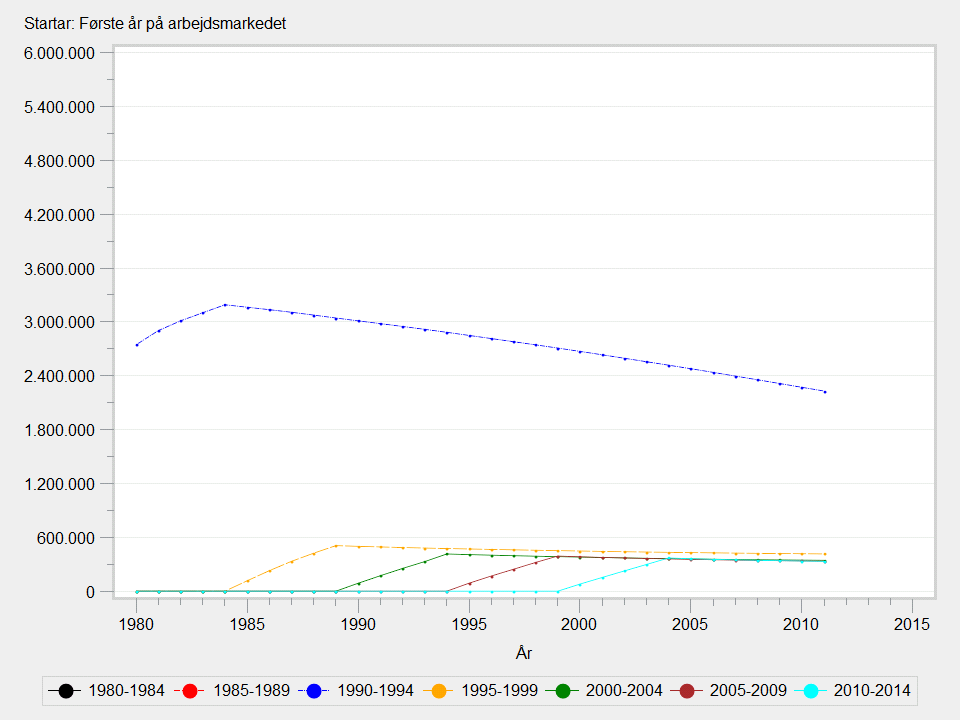 År for første gang på arbejdsmarkedet (fra 1980).Detaljeret beskrivelse
