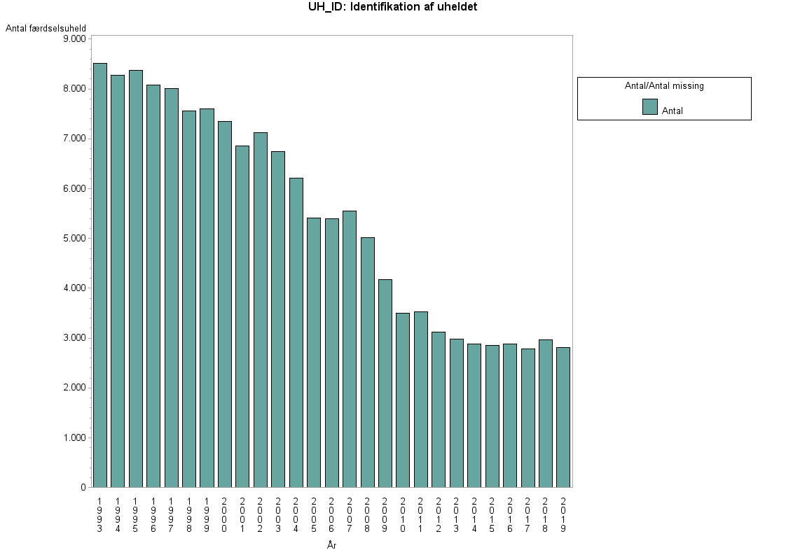 Statistikken om færdselsuheld baseres på optælling af uhelds_id (UH_ID) og danner grundlag for belysning af de forhold, som uheldet skete under (vejr, sted, uheldssituation).
