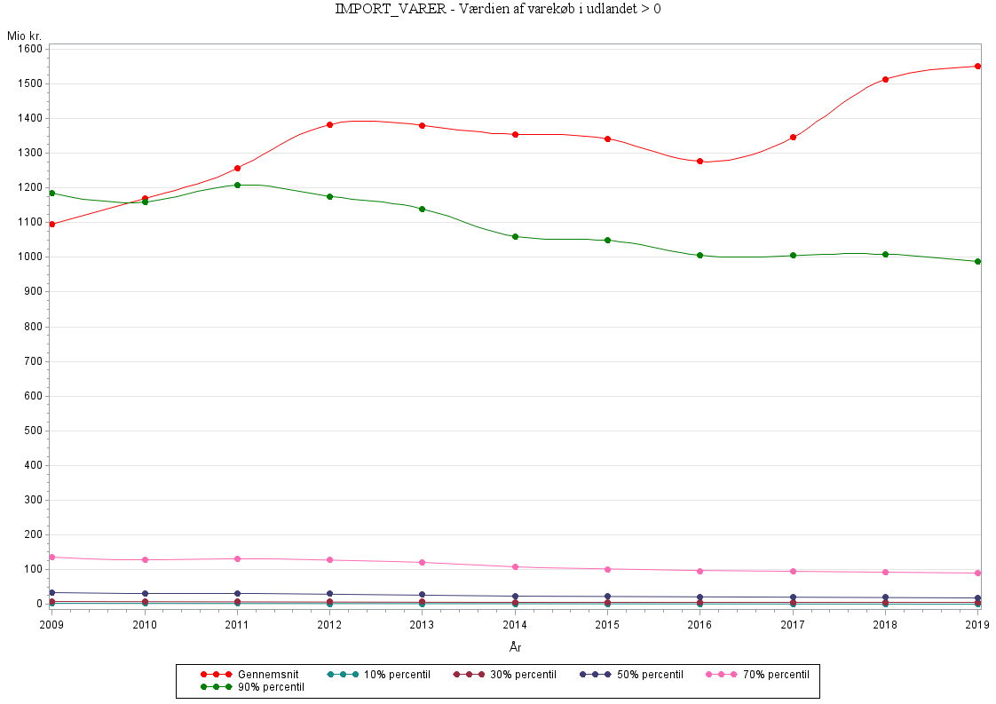 Import_varer beregnes på baggrund af import_moms_varer ved at gange med 100/25. Der divideres med 25, da det er gældende momssats.