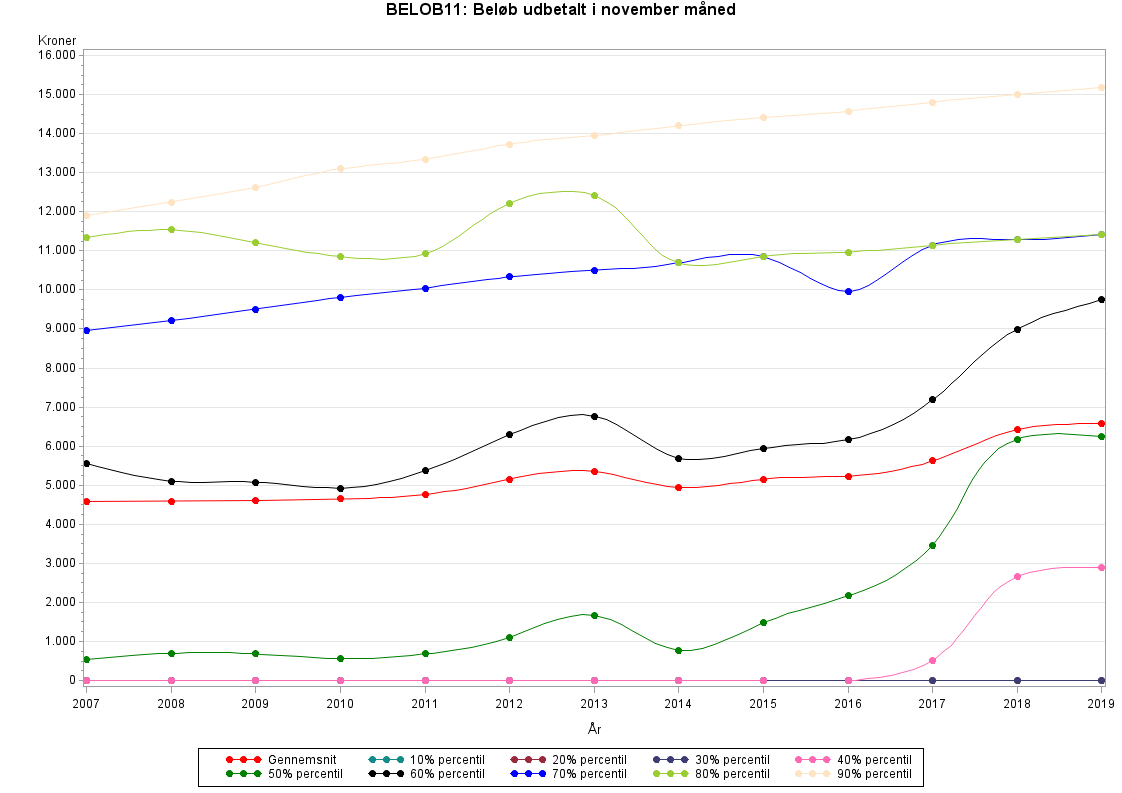 Udbetalt beløb i november måned - beregnet ud fra hvilken måned, den sidste dag i den periode, som udbetalingen dækker, lå i.Beløbet kan være negativt i forbindelse med efterreguleringer eller ved ydelser, der er bevilget med tilbagebetalingspligt, eller hvor ydelsen skal tilbagebetales, fx fordi modtageren har givet forkerte oplysninger til kommunen. De sker ret ofte, at der udbetales et beløb, der dækker en længere periode. Især gælder det for løntilskudsordningerne, hvor beløbet udbetales til en arbejdsgiver.