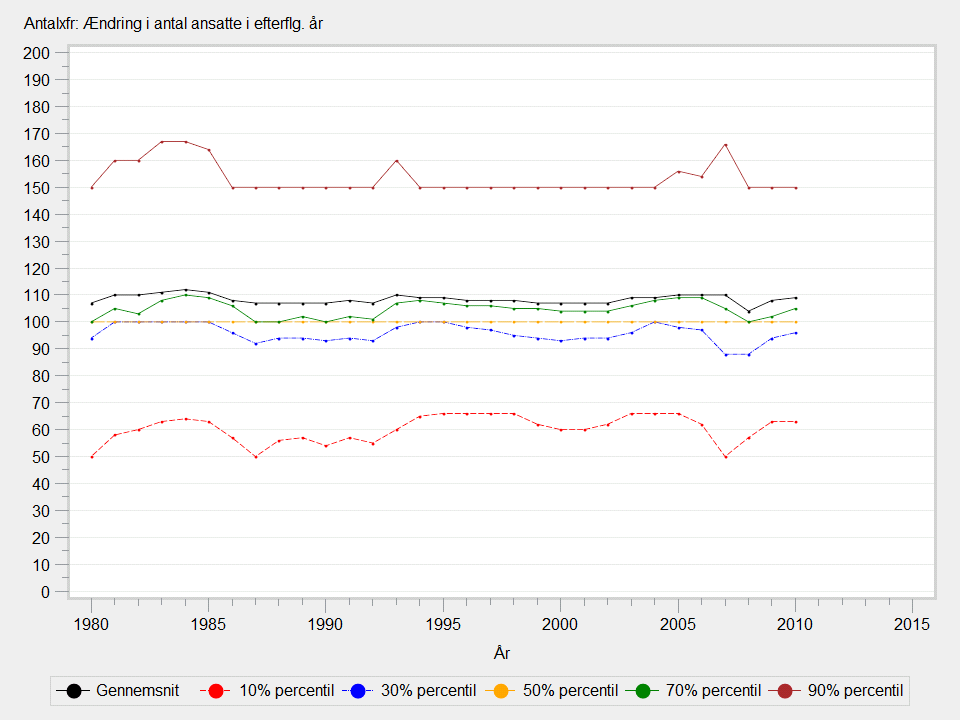 Variablen angiver ændring i antal hovedbeskæftigede på et arbejdssted i det efterfølgende år i procent.Detaljeret beskrivelse