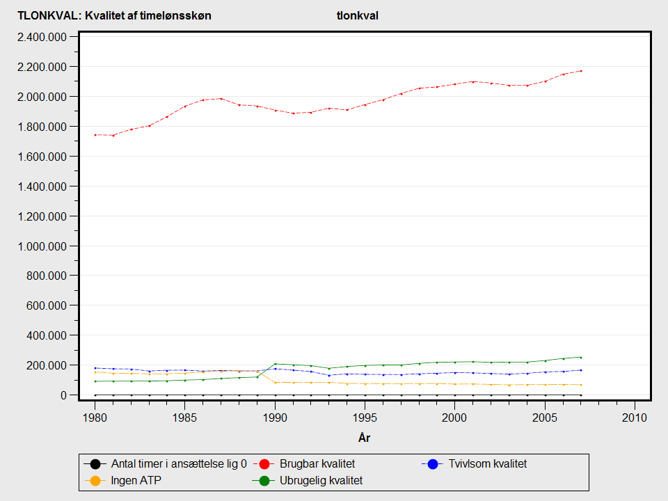Værdier over 100 kan forekomme. Det betyder, at bestemmelsen af timelønnen i høj grad drukner i sin egen usikkerhed. For personer, der ikke optræder i befolkningen d. 1/1, men kun optræder d. 31/12 det pågældende år, sættes værdien af Tlonval til større end 500. Disse personer benævnes "tilgangspersoner".