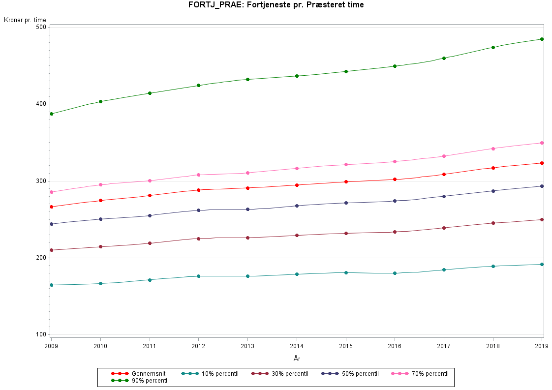 Fortjenesten pr. præsteret time i kr.Fortjenesten pr. præsteret time hed før år 2009 GW. GW findes i det gamle LON register indtil 2010.