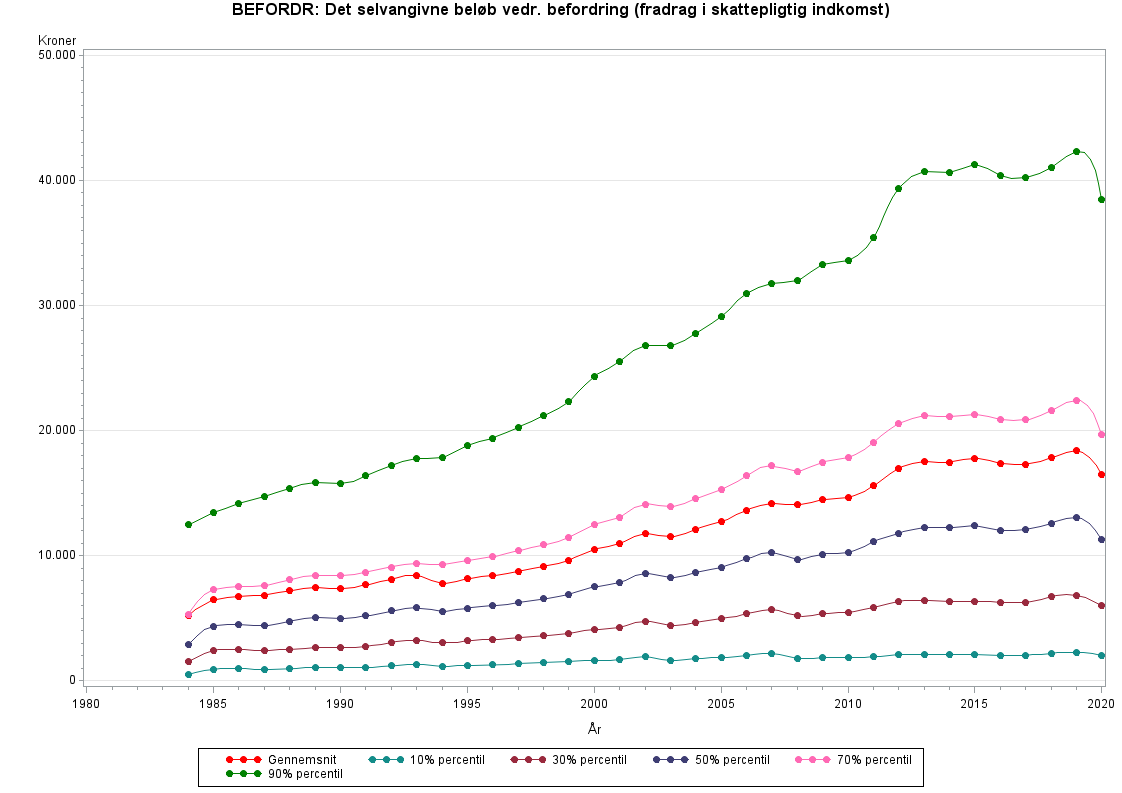 I Statistikbanktabellerne INDKP1, INDKP3, INDKP4 og INDKP7 har variablen under indkomsttype nr.27b og benævnes 'Transportfradrag '