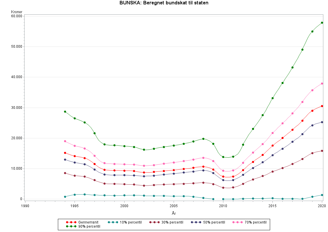 Populationen i datasæt, som udleveres af forskningsservice, omfatter alle personer som er mindst 15 år ved årets udgang eller har indkomst i løbet af året eller formue den 31. december. For at få konsistens over tid i vedhæftede tabel og graf er populationen lig med alle fuldt skattepligtige personer, som har været i Danmark både primo og ultimo året, og som ved årets udgang er mindst 15 år.