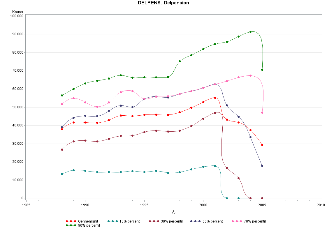 Variablen DELPENS er dannet for perioden 1988 til 2006 (i 2006 er antal modtagere praktisk taget nul).