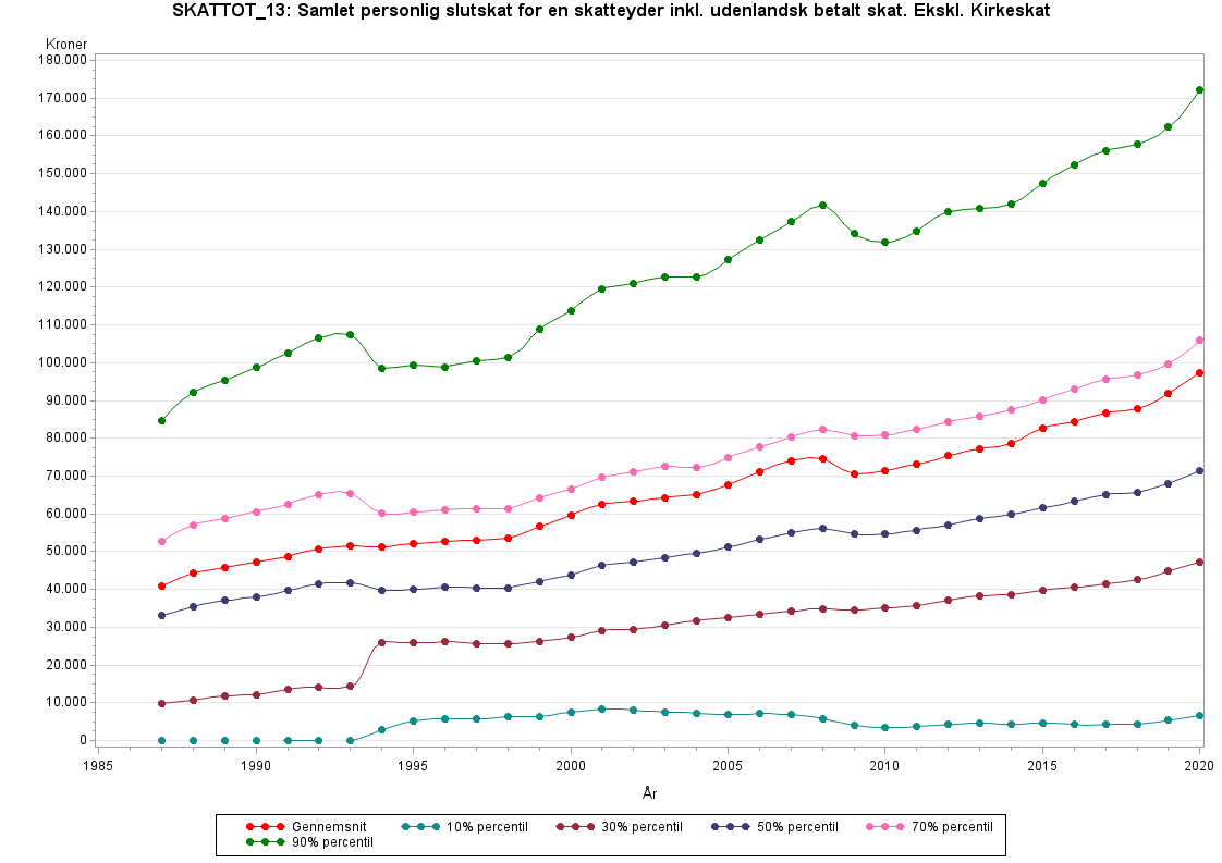 Bemærk: Fra 2011 er beregnet skat på slutopgørelsen(variablen SLUSKAT) fra skat inkl. arbejdsmarkedsbidrag. Denne variabel er uændret ekskl. arbejdsmarkedsbidrag.