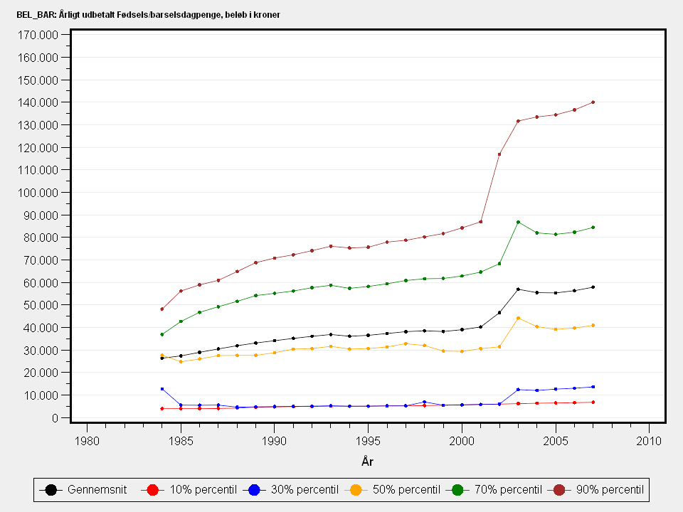 Årligt udbetalte fødsels-/barselsdagpenge i hele kroner.Detaljeret beskrivelse