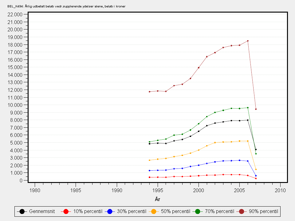Fra og med 1994 gøres de sociale ydelser skattepligtige og forhøjes tilsvarende.Variablen rummer alle udbetalinger af supplerende ydelser givet inden for året.