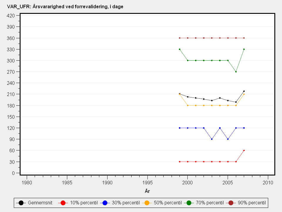 Årsvarighed af forrevalidering. Varighed måles i dage i måneden (fastsat til 30 dage)