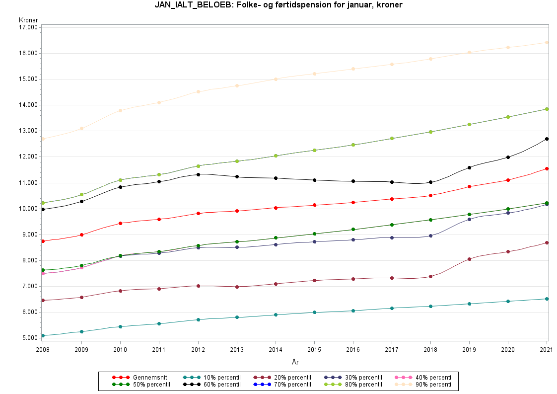 Folke- og førtidspension i alt kr. i januarPopulationen er alle personer, der får udbetalt pension for januar det pågældende år.
