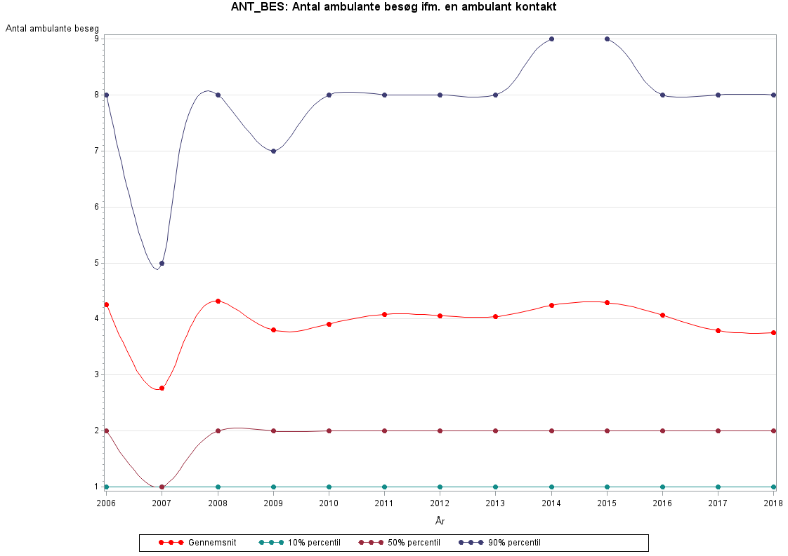 Gennemsnittet angiver det gennemsnitlige antal besøg for en ambulant kontakt, mens spredningen angiver afvigelsen fra gennemsnittet beregnet på en kvadratisk skala, dvs. kvadratroden af variansen.