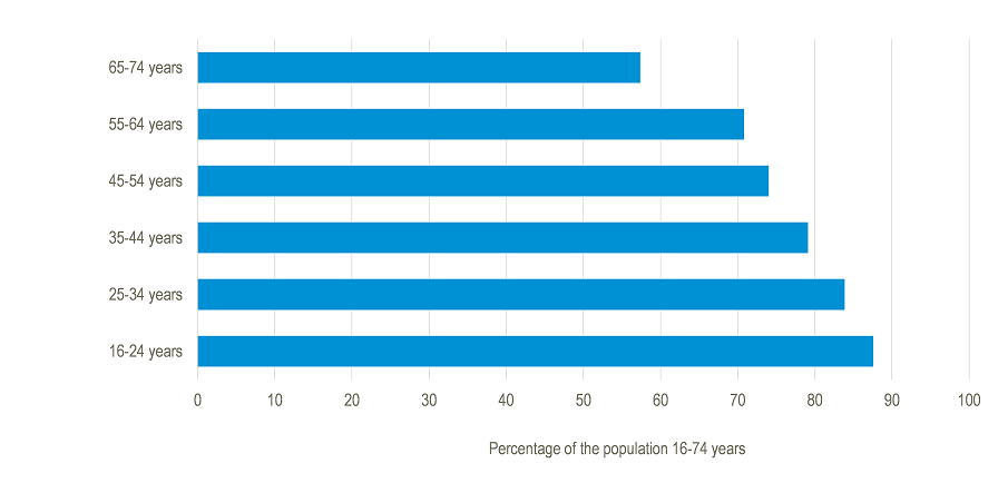 Of the 15-24-year-olds, 89 per cent used the services at least once a week. The 85-89-year-olds are the least active with 73 per cent using the services at least once a week.